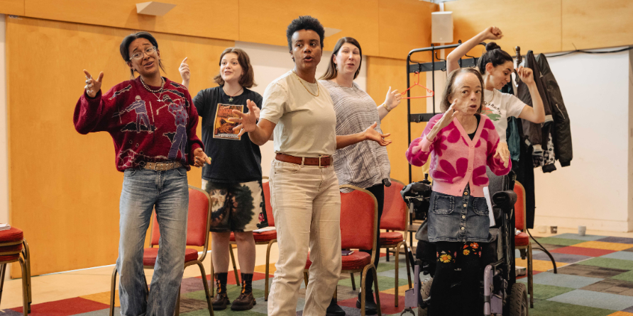 Cast in rehearsals for The Ministry of Lesbian Affairs. Photo by Mark Senior.