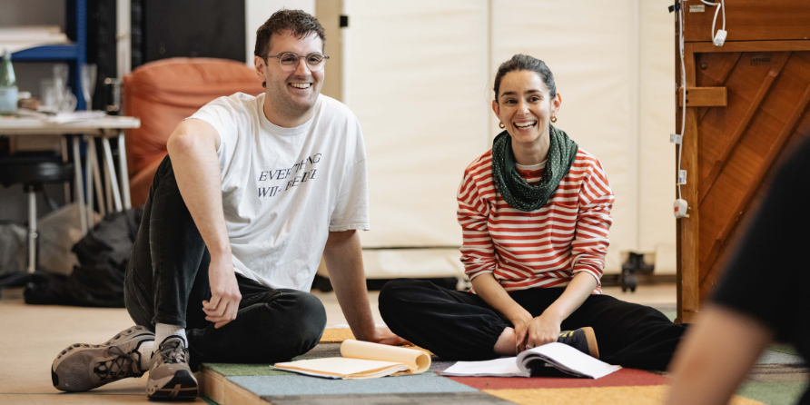Zak Ghazi-Torbati and Serena Manteghi in rehearsals for The Ministry of Lesbian Affairs. Photo by Mark Senior.